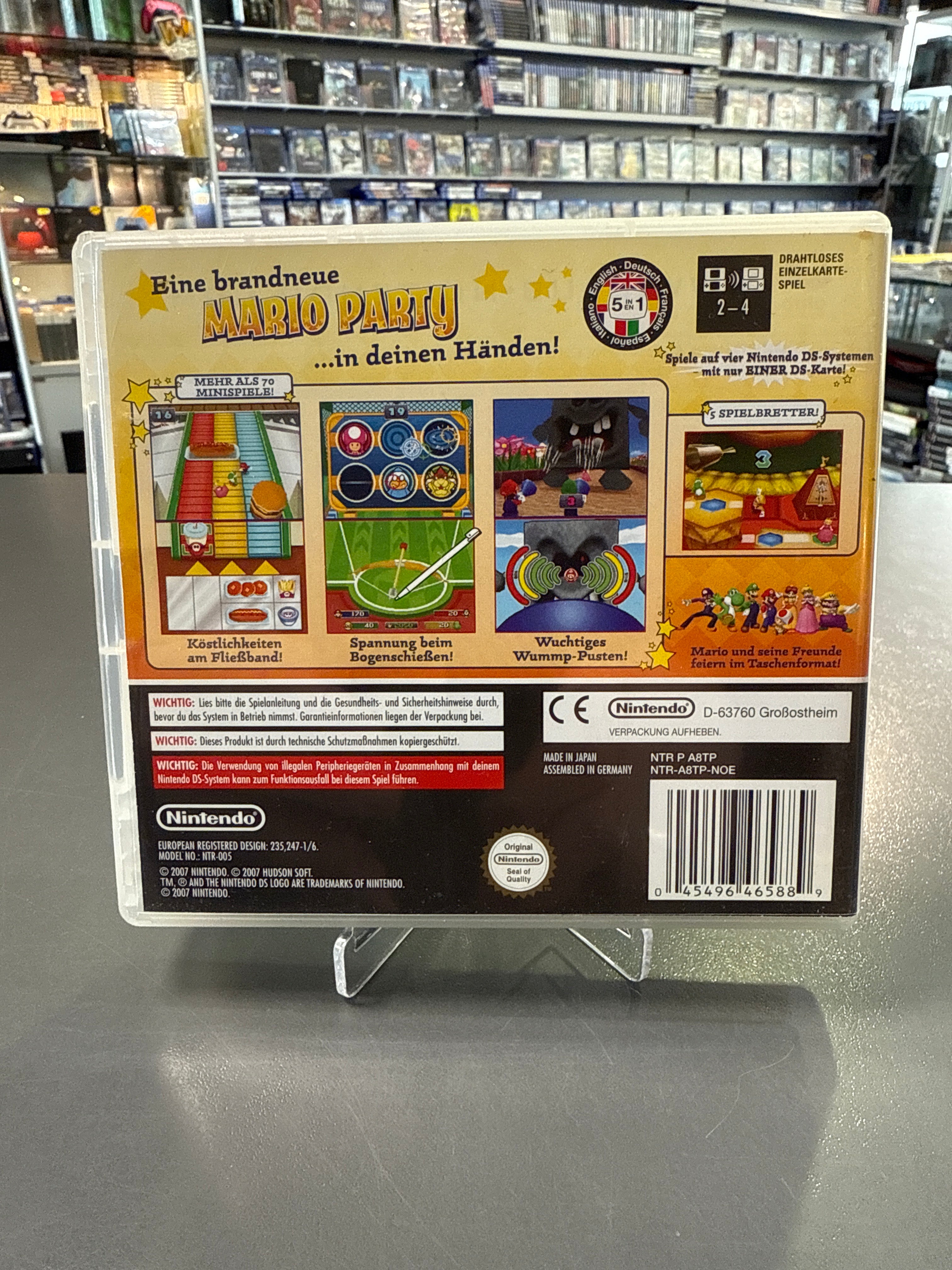 Mit Mario Party DS lässt Mario erstmals auf dem Nintendo DS die Party steigen! Mario und seine Freunde wurden von Bowser geschrumpft und müssen nun ihre ursprüngliche Größe wieder erlangen. Gar nicht so leicht, wenn die Welt gleich so ganz anders aussieht - und ein bisher lieblicher Garten oder ein harmloses Musikzimmer auf einmal voll ungeahnter Gefahren steckt! Insgesamt gibt es fünf unterschiedliche, bunt und liebevoll gestaltete 3D-Spielbretter mit jeweils verschiedenen Endgegnern. Aber die bringen mit ihrer starken KI erst richtig Schwung in die Party - auch wenn man alleine spielt. Wer dem Party-Trubel noch eins draufsetzen möchte, der kann sich in eins der vielen Minispielen stürzen oder aber bei einem der sieben herausfordernden Puzzles entspannen. Natürlich steigt die Sause nur mit den einzigartigen Funktionen des Nintendo DS: Touchpen und eingebautes Mikrofon - und die sorgen für viel Wirbel und Fetenstimmung. Let's Party - mit Mario Party DS!