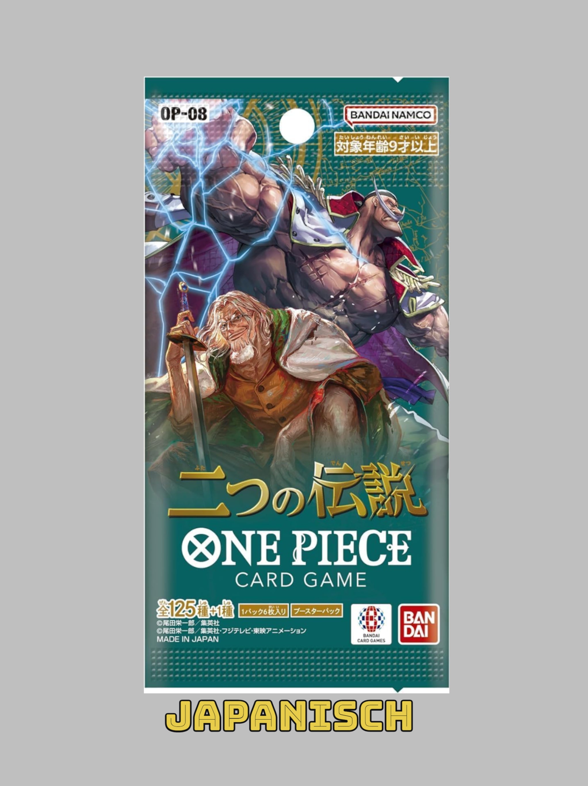 Op-08 Two Legends umfasst insgesamt 150 verschiedene Karten, die mit Liebe zum Detail gestaltet wurden. Jede Karte fängt die Essenz und die Abenteuerlust der Charaktere aus One Piece perfekt ein. Von den mutigen Strohhutpiraten über die furchteinflößenden Samurai bis hin zu den mysteriösen Warlords – jede Karte ist ein kleines Kunstwerk für sich. Seit 1997 begeistert One Piece als international erfolgreiche Mangaserie Groß und Klein, auch heute noch werden wöchentlich Folgen veröffentlicht. Nun kommt endlich das One Piece Card Game auf den Markt. Duelliere dich mit dem One Piece Card Game bis an die Spitze und bezwinge deine Gegner in die Knie!